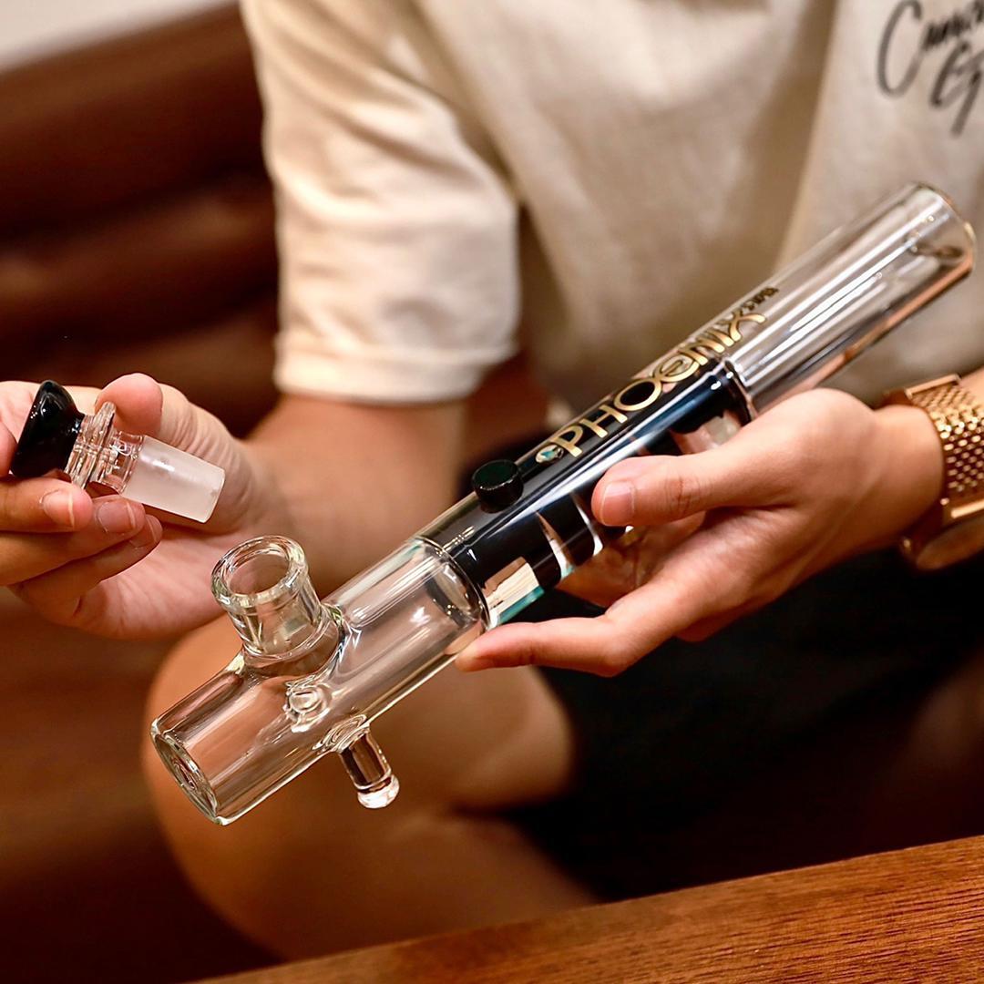 吸引すると、煙はダウンステムを通り、ストレートチューブの底から口に向かいます。
